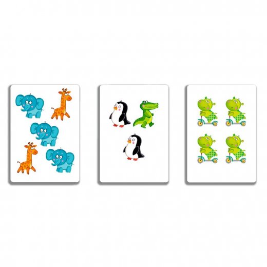 Во втором варианте игры используются картинки с изображениями всех животных. Правила соревнования остаются прежними, только теперь нужно считать лишь одинаковых зверей.