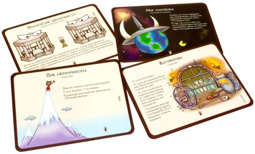 Внутри вы найдёте 16 новых карт порталов и 20 карт подземелий нового формата. Карты порталов замешиваются в колоду дверей и так или иначе взаимодействуют с колодой подземелий. Всё очень просто и дико интересно!