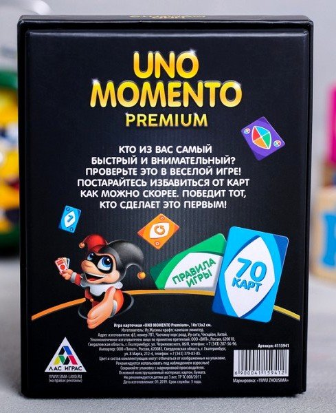 Купить настольную игру "Uno momento Premium" в Новосибирске Вы можете в магазине развивающих и настольных игр "Игры Почемучек".