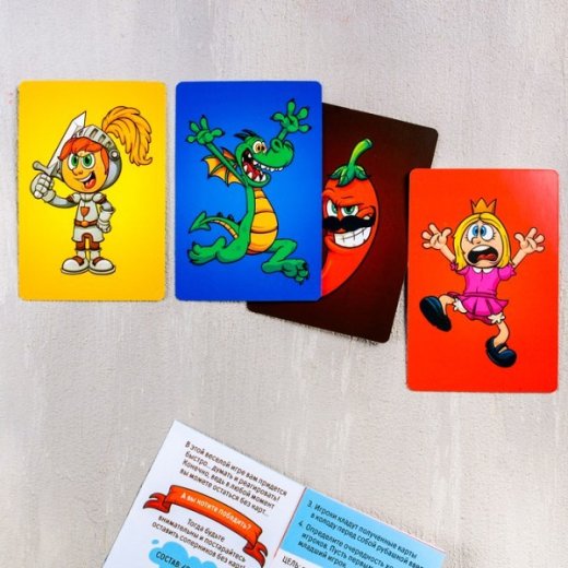 Главная задача всех участников — остаться единственным, у кого есть карты. Так что им предстоит нападать на карты друг друга и защищать свои! В игру входят карты: