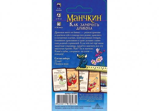 "Манчкин. Как замочить дракона" — это небольшое тематическое расширение для классического "Манчкина", однако никто не запретит вам добавить драконов в любой из доступных сеттингов! Драконы в космосе или на пиратском корабле? Почему бы и нет?! Чем больше вакханалии, тем лучше, да?