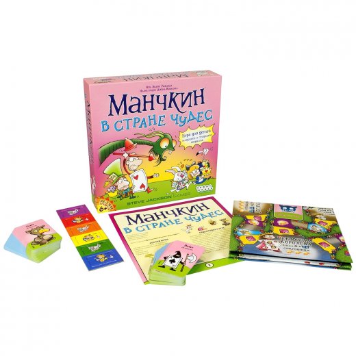 Поспеши за Белым Кроликом, герой, не то все приключения пролетят мимо! Хватай верный молоток для крокета, запасись пудингом и прыгай в нору, навстречу Стране чудес! Настольный хит «Манчкин» приходит в завораживающий мир Льюиса Кэрролла. К приключениям Алисы могут присоединиться как взрослые, так и совсем юные манчкины.