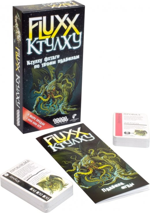 "Fluxx Ктулху" — новая версия знаменитого настольного бестселлера, приправленная мрачной безысходностью. Цели игроков постоянно меняются в ходе игрового процесса благодаря картам, которые вводят новые и отменяют старые правила. Тяни карту, играй карту, прикрывайся Знаком Древних и охоться на пингвинов и шогготов на Хребтах Безумия... Но вот правила поменялись, и только вовремя пробудившийся Йог-Сотот принесет тебе победу. И гибель всему человечеству — за компанию!