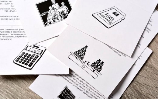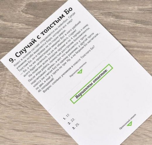 Вы достаёте карточку из коробки. Она сложена вдвое: на одной стороне вопрос, на другой — варианты ответов. А внутри — правильный ответ и что-то интересное. Дальше можно придумывать любые правила: играть вдвоём по очереди, и забирать карту, если верно ответил. Играть одному на время или просто на интерес. Раздавать карточки ученикам и проводить необычный школьный урок.