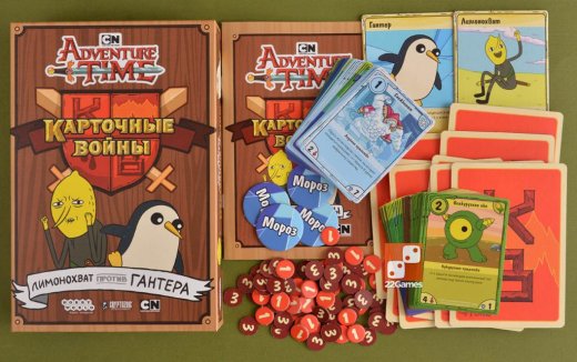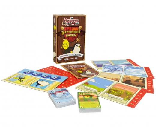 Серия "Время приключений. Карточные войны" принадлежит к жанру ККИ и представляет из себя настольный поединок между двумя игроками. Каждый из них обладает собственной колодой не менее, чем из 40 карт, и пытается одолеть своего соперника, используя различные тактики, расставляя на поле боя могучих существ, совершая оптимальные ходы, вовремя используя способности карт и т. д. – всё для того, чтобы понизить жизнь соперника с 25 до 0. Так как это ККИ, вы вольны сами собирать себе колоду, но есть несколько правил. Карт не может быть меньше 40 штук, а верхнего лимита нет вовсе. Также в колоде не может быть больше трёх одинаковых карт. Эпичные баталии разворачиваются на поле боя из четырёх земель – максимально канонично, прямо как в мультфильме.
