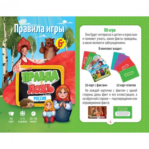 Сколько в России часовых поясов? Какие города самые древние? Какое озеро самое большое? Благодаря этой карточной игре можно не только весело и в игровой форме повторить историю и географию России, но и узнать много новых необычных сведений о своей стране. Настоящая находка для любознательных детей и их родителей! На карточках – 50 интересных фактов о России и замечательные иллюстрации. Сможете ли вы разобраться, где правда, а где ложь? Играйте – будет интересно!
