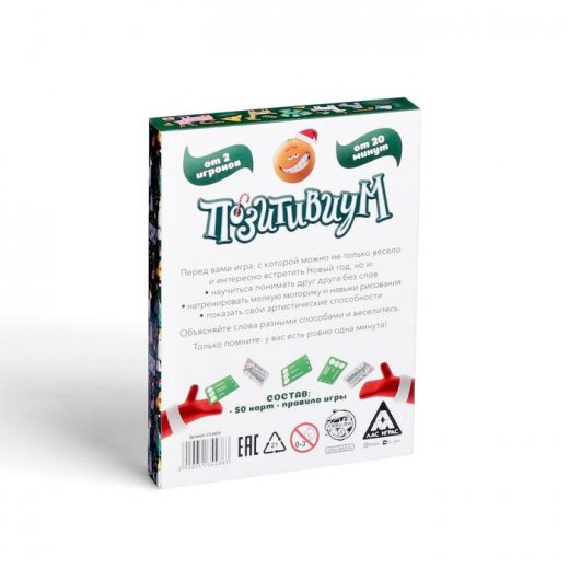 Настольная игра Позитивиум Новогодний поможет не только весело и интересно встретить Новый год, но и научиться понимать друг друга без слов, натренировать мелкую моторику и навыки рисования, а также показать свои артистические способности. Объясняйте слова разными способами и веселитесь. Только помните: у вас есть ровно одна минута!