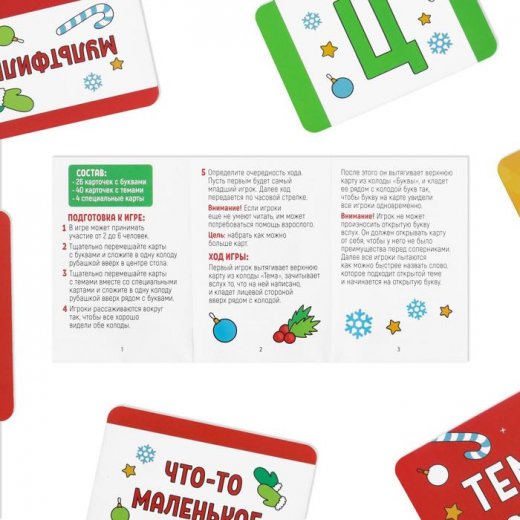 В игре есть 4 специальные карточки с веселыми заданиями. Если кто-то из игроков вытянул такую, его необходимо выполнить. А победит тот, кто наберёт больше всех очков.