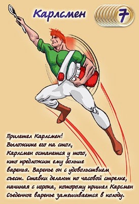 ВАЖНО! Одно варенье может использовать только в одной комбинации. Если в нескольких комбинациях указаны одинаковые варенья или пирожки, игрок должен иметь по одному экземпляру такого варенья или пирожка для каждой комбинации.