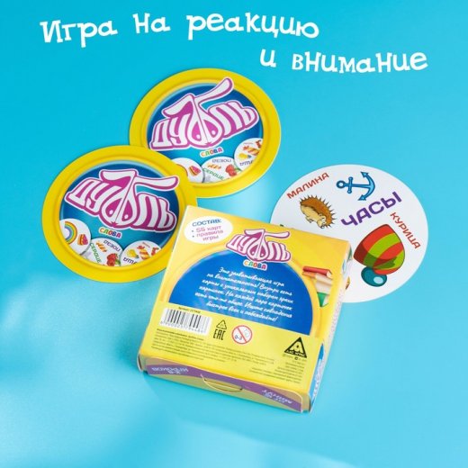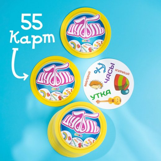 Это захватывающая игра на внимательность, в которой собрано 55 карточек. Но вот фокус! Ни одна из них не повторяется, но в каждой паре есть общая картинка — и она только одна!