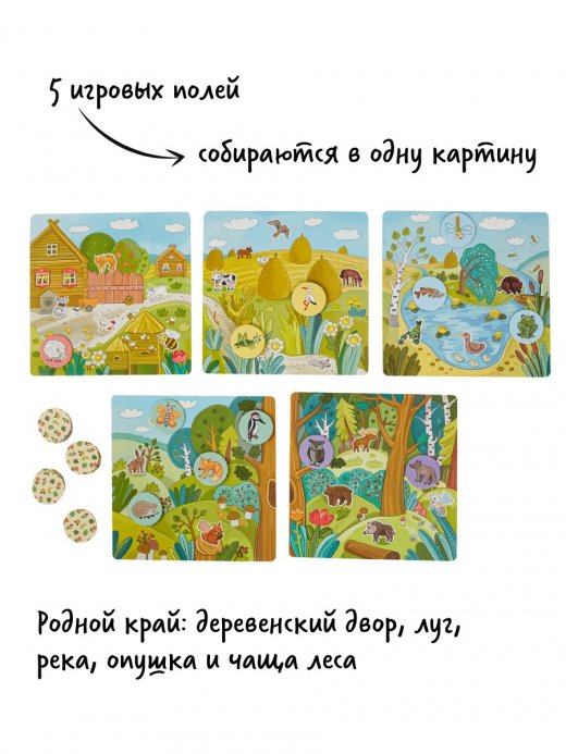 Лучшая вариация на тему "лото" — это лото "Родной край". Действие разворачивается на родных просторах – в поле, в лесу, на озере, в деревне. И животные встречаются те, которые живут рядом, в нашей полосе.