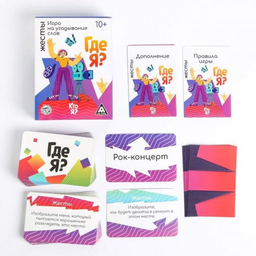 Игра заканчивается, как только один из игроков отгадает три слова с карт «Где я?». Тот, кто это сделает, победил. Также вы можете не использовать карты «Жесты» и играть в классический вариант игры «Где я?».