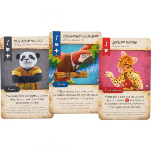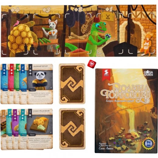 Долина Торговцев – это увлекательная красочная стратегия, в которой вы возьмёте на себя роль одного из коварных торговцев, принимающих участие в особенном состязании и борющихся за место в легендарной таинственной Гильдии. Вам предстоит разыгрывать карты, искусно сочетая возможности вашей расы, чтобы заставить полки личного стеллажа удивительными диковинками, использовать всевозможные уловки и профессионально избавляться от лишнего хлама. Игрок, который первым соберёт восемь полок, окажется счастливчиком, вытянувшим билет в новую жизнь, однако соперничество будет жарким! Дерзкие и громкие ара, удачливые и хаотичные оцелоты, предприимчивые и доброжелательные панды, хитрые забияки-еноты, приспосабливающиеся хамелеоны с копирующими картами и запасливые белки-летяги с множеством вещиц – каждый не намерен уступать в битве и приготовил несколько специальных приёмов против конкурентов. Действуйте стремительно, решительно и хитро, и кто знает, быть может фортуна улыбнётся именно вам!