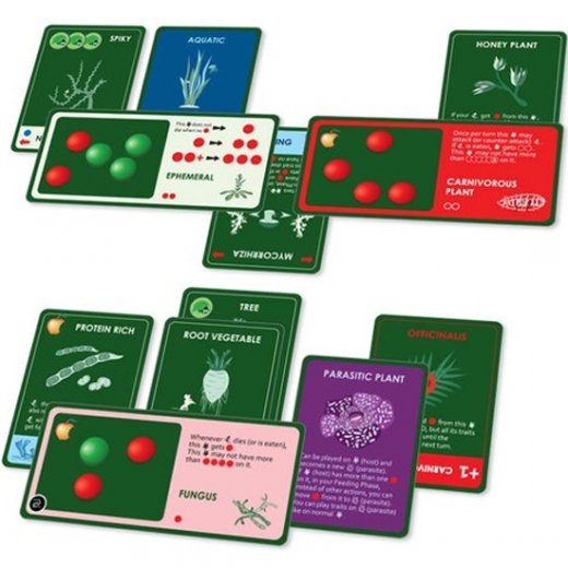 Растения, грибы и паразиты могут сжирать и подминать друг друга, паразитировать, усиливать или ослаблять свойства других растений. Так что дополнение Растения здорово обновляет и украшает игру Эволюция!