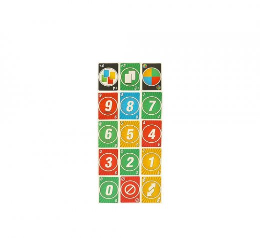 Верхняя карта колоды - синяя «0», игрок может положить сверху или синюю карту, или «0» любого цвета.