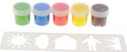 Состав набора: 5 баночек красок по 25 мл и тематический трафарет.