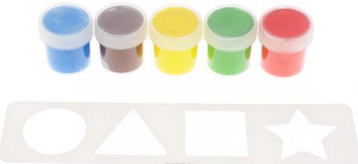 Состав набора: 5 баночек красок по 25 мл и тематический трафарет.