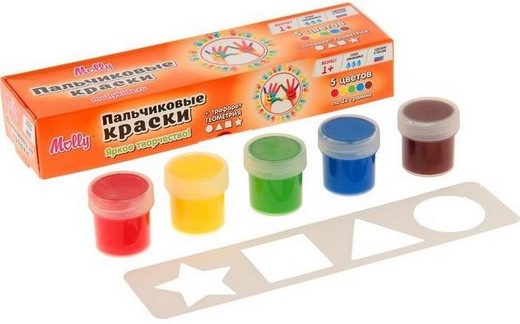 Пальчиковые краски + трафарет Геометрия Molly для совсем еще маленьких детей, которые в силу своего возраста не в состоянии удерживать в руке кисть, но уже испытывают потребность в рисовании. Нетоксичные пальчиковые краски для детей являются абсолютно безопасными. Смешивая краски и рисуя пальчиками, ребенок развивает воображение, уверенность в себе и независимость. Консистенция пальчиковых красок позволяет наносить их практически на любую поверхность: стекло, плитка в ванной, бумага. Пальчиковые краски, сделанные на водной основе, легко снимаются с любой поверхности, смываются с рук и отстирываются с одежды. Краски идеально подходят для раннего обучения цветам, развития тонкой моторики, тактильного восприятия.