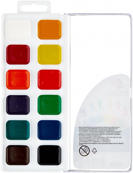 Краски акварельные медовые полусухие изготовлены на основе натуральных природных компонентов и высококачественных пигментов. Акварель предназначена для детского творчества и различных живописных работ.