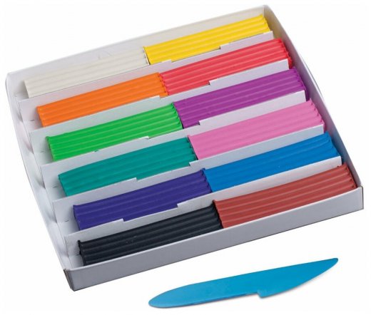 цвета: белый, желтый, красный, зеленый светлый, синий, черный, фиолетовый, оранжевый, красно-коричневый, изумрудный, фиолетово-розовый, розовый; стек в комплекте; масса бруска - 20 г; вид упаковки - картонная коробка