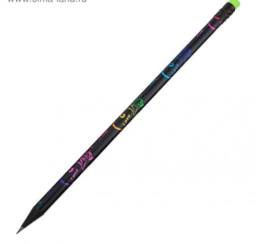 Купить Карандаш ч/г с ластиком НВ Черный с цветным узором в Новосибирске Вы можете в магазине развивающих и настольных игр "Игры Почемучек".