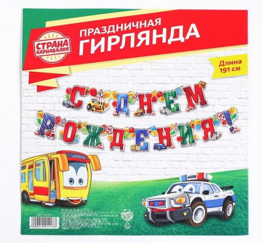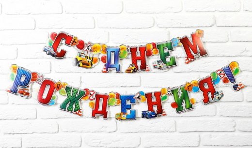 Гирлянда — прекрасный аксессуар для украшения комнаты или зала! Он станет отличным дополнением любого праздника. Буквы скреплены с помощью люверсов, что позволяет свободно трансформировать гирлянду. На лицевой стороне напечатана красочная надпись. Аксессуар легко крепится на стену или дверной проём с помощью клейкой ленты или кнопок.