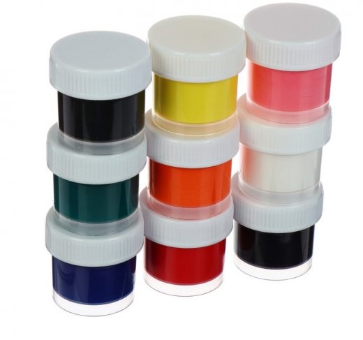 Акриловые краски по ткани предназначены для декоративных работ по любым видам ткани: натуральным и синтетическим. Классические цвета прекрасно смешиваются с любыми другими цветами, равномерно наносятся и быстро высыхают. Разбавляются водой в жидком виде. После термической обработки утюгом, изделие можно стирать при температуре 30-40 градусов С. Удобные герметичные баночки, предотвращающие высыхание краски