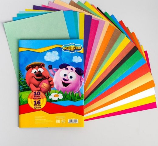 Купить «Набор бумага цветная двусторонняя и цветной картон Смешарики А5» в Новосибирске Вы можете в магазине развивающих и настольных игр "Игры Почемучек".