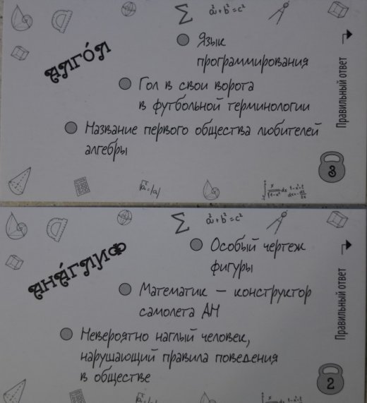 На обороте карточки указан правильный ответ и дано более подробное объяснение значения загаданного слова, так что не подглядывайте. В конце игры подсчитайте баллы и выясните, кто стал настоящим профессором!