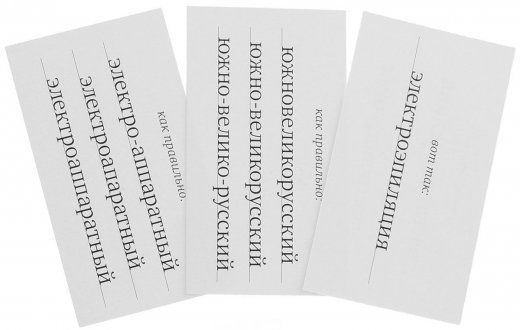 На карточках написаны слова с разными вариантами написания. Необходимо правильно выбрать верное написание слова и перевернув карточку проверить себя. Играть можно и в компании, в таком случае отгаданные карточки каждый игрок забирает себе. А победит тот, у которого к концу игры окажется больше всех карточек.