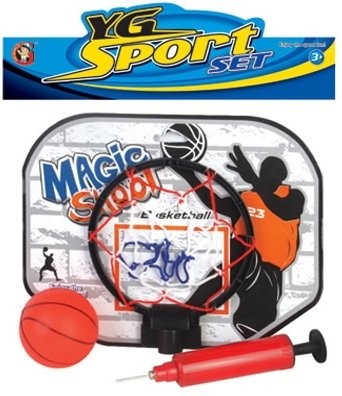 Состав: щит с кольцом 280х220 мм, мяч 100 мм, насос.
