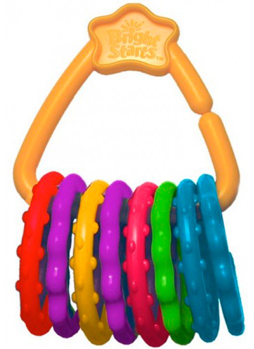 Прорезыватель Bright Starts "Веселые колечки" развивает мелкую моторику, тактильные ощущения и зрение, а также работает как тренажер, формируя правильный прикус.
