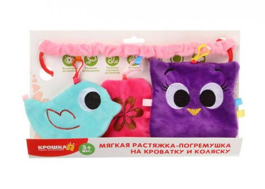 Купить растяжка погремушка мягкая на кроватку коляску "Малышка" в Новосибирске Вы можете в магазине развивающих и настольных игр "Игры Почемучек".