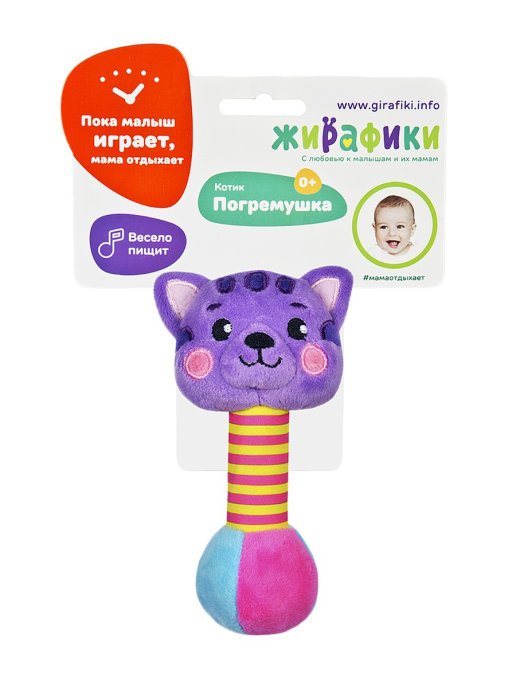 Купить Погремушка со звуком Котик в Новосибирске Вы можете в магазине развивающих и настольных игр "Игры Почемучек".