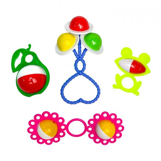 - Состав набора: погремушка "Лягушонок", погремушка « Груша », погремушка " Букетик", погремушка «Снежинки»