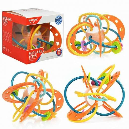 Причудливая форма надолго займёт внимание карапуза. Погремушку удобно использовать: лёгкая вещица подходит для захвата маленькими ладошками.