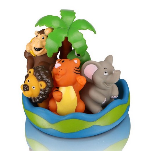 Компанию при купании малышу составят: остров с пальмой, милашка-львёнок, обезьянка с бананом, улыбающийся слоненок, обаятельный тигренок и змейка. Забавным дополнением также будет возможность игрушек брызгать водой при сжатии. Устраивайте водные сражения! Все составляющие набора приятны на ощупь и имеют удобную для захвата маленькими пальчиками эргономичную форму. Игрушки помогают в изучении цветов и форм предметов, предназначены для формирования умственных и физических способностей малышей под час проведения водных процедур. Выполнен набор из прочного и высококачественного материала, абсолютно безопасного для детской игры.