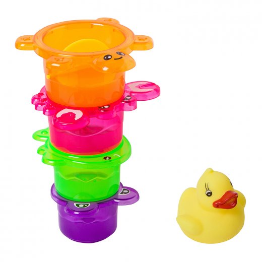 Набор для купания "Стаканчики с уткой" поможет развить мелкую моторику и координацию движений, научит различать цвета, распознавать форму и определять размер предметов.