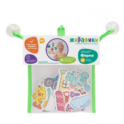 Набор стикеров для купания "Ферма 18 шт" превратит купание малыша в интересное приключение, полное новых и ярких эмоций! Всего в комплекте присутствуют 18 карточек, изготовленных из мягкого и достаточно прочного материала EVA. Он не боится воды, сохраняет свой яркий внешний вид и подходит для многоразовой игры.