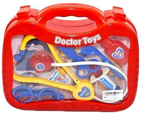 Набор доктора 13 предметов Doctor – поможет ребенку почувствовать себя настоящим врачом, спасающим человеческие жизни, и послужит хорошим подарком для ребенка. Благодаря этому потрясающему набору, ваш малыш сможет играть в сюжетно-ролевые игры, а именно — в доктора! У него появится свой чемоданчик, в котором будет скрыто множество интересных и крайне полезных для пациентов вещей. В комплект входят следующие игровые элементы: это стетоскоп, зеркальце, ножницы, ложечка, шприц, две бутылочки, нож термометр, лампа, щипцы и даже микроскоп!