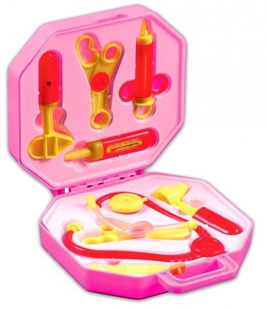 Игровой набор «Медицинский чемоданчик» содержит все необходимые инструменты для первичного осмотра больного пациента. Аксессуары выполнены в приятных тонах и компактно хранятся в удобном закрывающемся чемоданчике, который можно взять за ручку и поспешить на срочный вызов к больному. И ни в коем случае не стоит переживать о том, что малыш поранится во время игры, ведь совершенно все приборы выполнены из высококачественного пластика и не несут вреда для здоровья. С их помощью вы сможете внести разнообразие в привычные развлечения ребенка, а он станет главным доктором всей семьи!