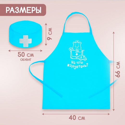 - В комплект входит колпак, фартук, очки и стетоскоп.