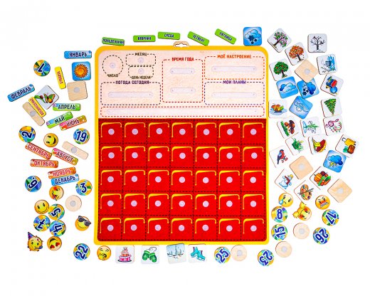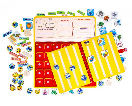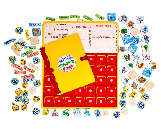 С помощью календаря-планировщика ребенок научится планировать свой день. Выбирая соответствующие фишки и размещая их в окошке "Мои планы", ребенок уж точно не пропустит День рождения близких, запланированное путешествие, не забудет про соревнования или выступление в музыкальной школе.