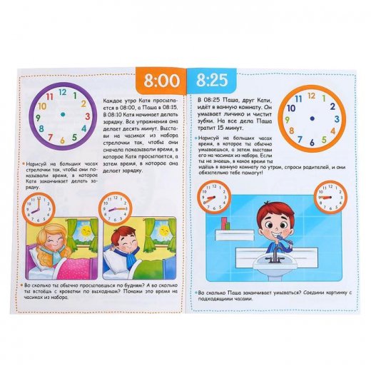 Выполняйте задания и изучайте время вместе с малышом, создайте свой распорядок дня.