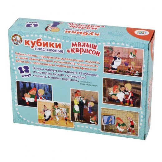 Купить кубики "Малыш и Карлсон 12 шт" в Новосибирске Вы можете в магазине развивающих и настольных игр "Игры Почемучек".