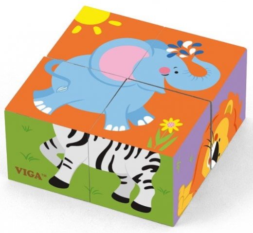 Купить кубики "Дикие животные 4 дет. VIGA" в Новосибирске Вы можете в магазине развивающих и настольных игр "Игры Почемучек".