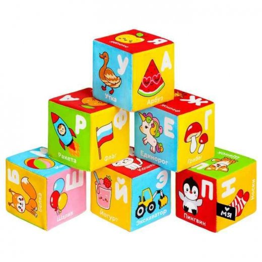 Купить Кубики Мяшечки Азбука с картинками в Новосибирске Вы можете в магазине настольных и развивающих игр "Игры Почемучек"