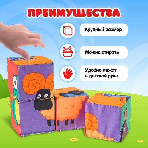 Купить Мягкие кубики Синий трактор Зверята 4 шт в Новосибирске Вы можете в магазине развивающих и настольных игр "Игры Почемучек".
