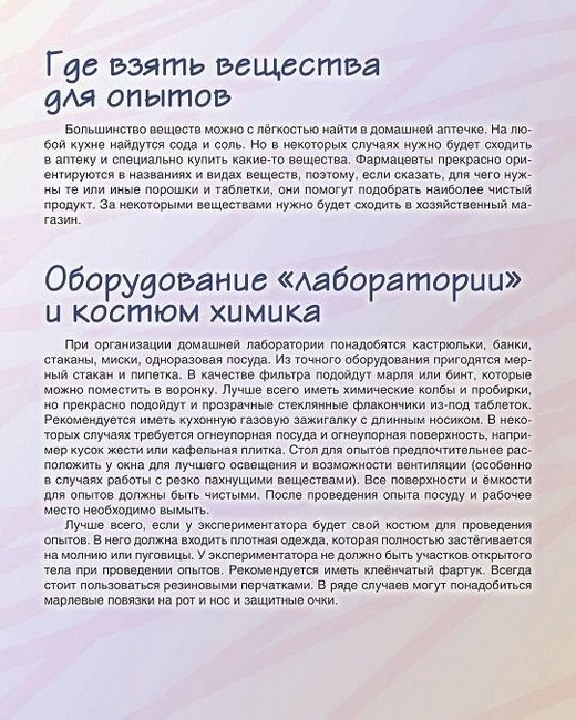 Эта книга просто и понятно расскажет детям об основных законах природы и материи на примере весёлых опытов, каждый из которых сопровождается пошаговой инструкцией и понятными яркими иллюстрациями. Маленький читатель сможет превратиться в настоящего лаборанта и провести ряд интересных экспериментов. В конце каждого опыта приведено доступное научное объяснение даже самых сложных химических процессов, задействованных в эксперименте. Оборудование для опытов не требует дополнительных вложений - большинство предметов и материалов найдутся в любом доме. Для детей младшего и среднего школьного возраста.