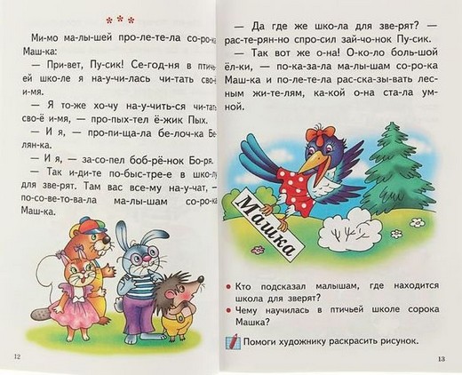 После каждого небольшого законченного по смыслу отрывка ребенку задаются вопросы на понимание прочитанного. Они направлены на развитие связной речи. Кроме того, предложенные в книге задания помогут ребенку усвоить грамматический строй языка и расширить активный словарный запас.